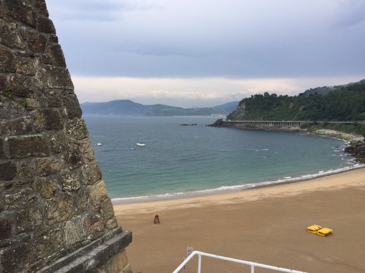 The trail begins near the funicular. (Ry, I’m sure you know where that is). Climbing the funicular/lighthouse hill kicked my ass, and that was just the beginning of the coastal hills. The pathway skirts the coast and passes farms, and vinyards before descending back to the coast itself. It’s beautiful. Orio is a coastal port town at the mouth of a river. I stopped in Orio for water, coffee and a short break. It rained for the next hour or so. Zarautz is a bit bigger than Getaria and a cool marble paved walkway joins them. (What’s with these slick Spanish stamped marble sidewalks; I slip-slid, ice skating part time in my hiking shoes.) They are roughly 3 miles apart and you can see Getaria jetting out from the coast as its own little peninsula. 3 Baleen Whales frolicked a 100 yards off shore, as if greeting me.  A couple of posted signs at vista points along the way notified me that this was a common occurrence.( side note before I forget: Fin, you and Suzi would absolutely love San Sebastián!)