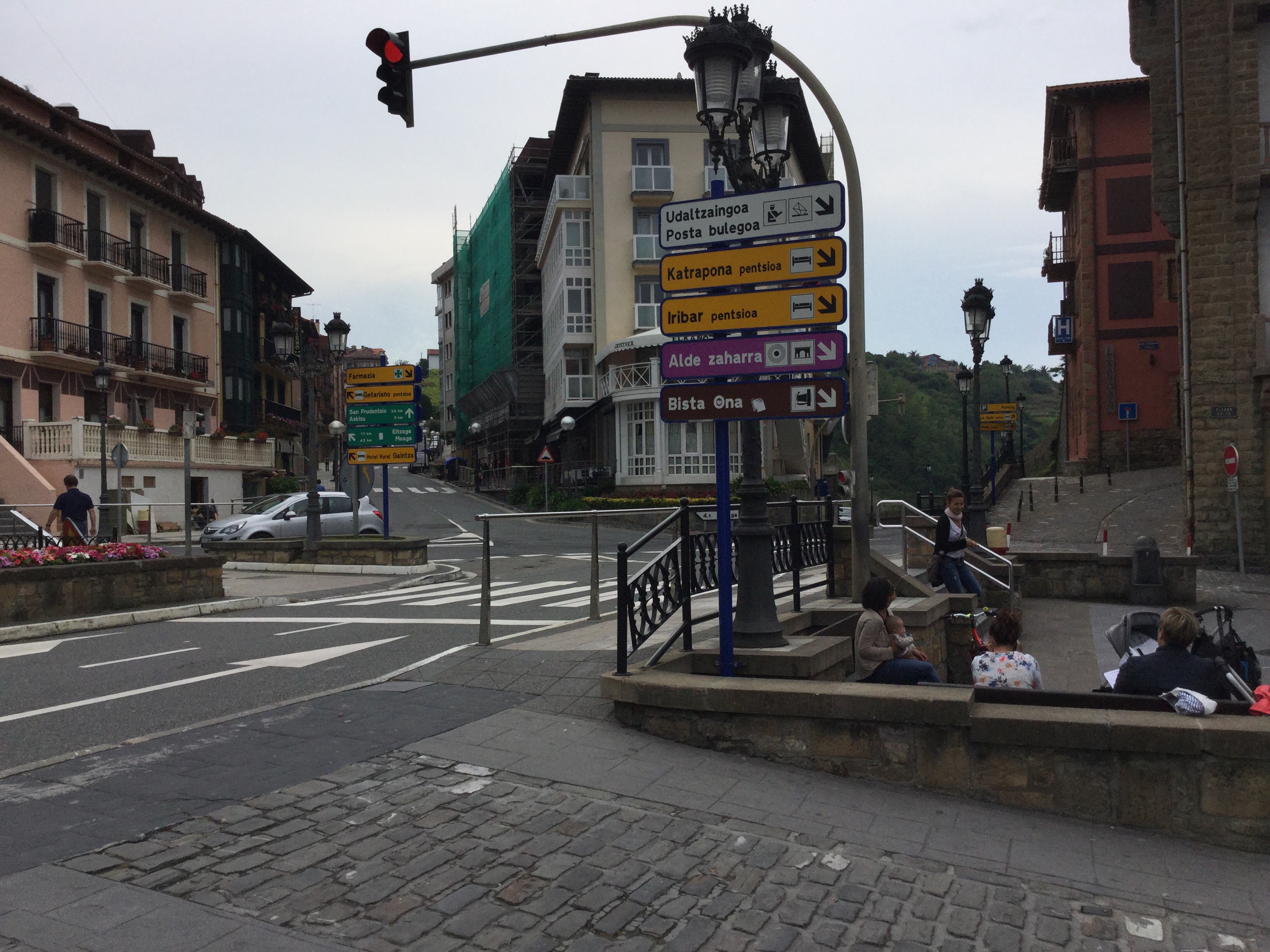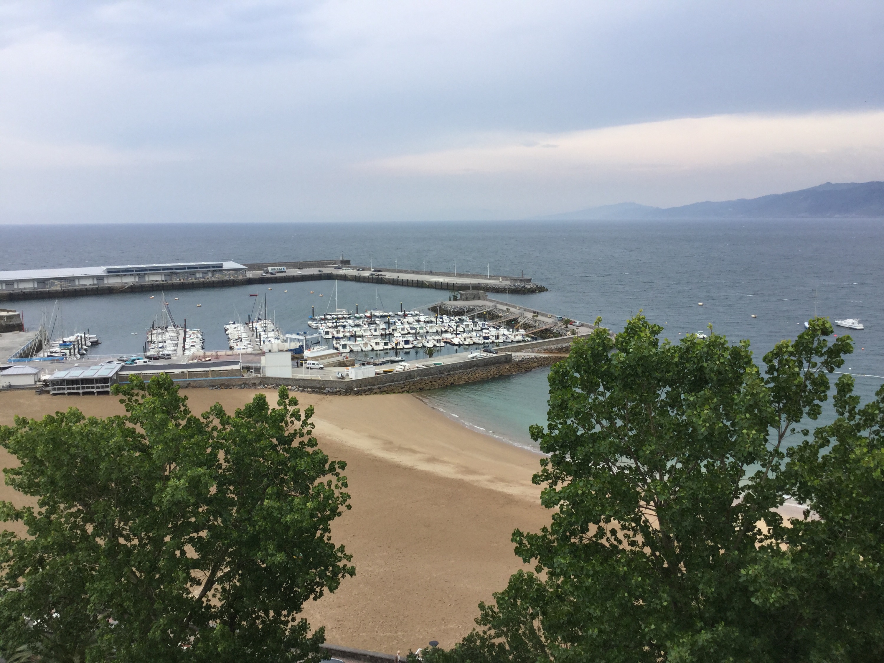 The trail begins near the funicular. (Ry, I’m sure you know where that is). Climbing the funicular/lighthouse hill kicked my ass, and that was just the beginning of the coastal hills. The pathway skirts the coast and passes farms, and vinyards before descending back to the coast itself. It’s beautiful. Orio is a coastal port town at the mouth of a river. I stopped in Orio for water, coffee and a short break. It rained for the next hour or so. Zarautz is a bit bigger than Getaria and a cool marble paved walkway joins them. (What’s with these slick Spanish stamped marble sidewalks; I slip-slid, ice skating part time in my hiking shoes.) They are roughly 3 miles apart and you can see Getaria jetting out from the coast as its own little peninsula. 3 Baleen Whales frolicked a 100 yards off shore, as if greeting me.  A couple of posted signs at vista points along the way notified me that this was a common occurrence.( side note before I forget: Fin, you and Suzi would absolutely love San Sebastián!)