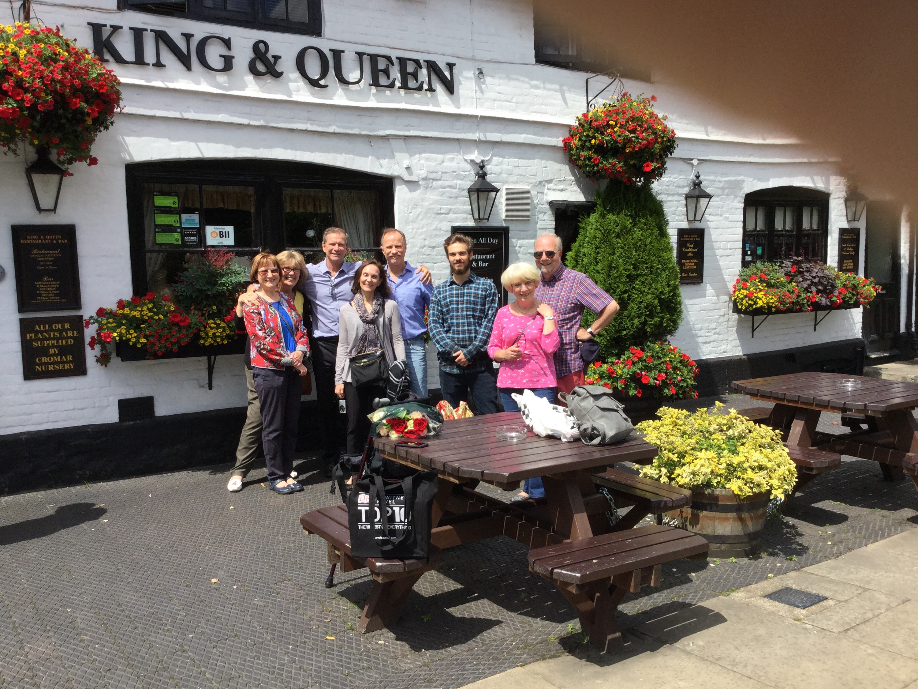 grave street we walked the seven or so blocks to Victoria Station and eventually met my brother Vic, MK, Alex and my cousins Maggie, who trained down from Manchester and Helen, who trained from Liverpool. We then trained 50 or so minutes to East Malling, Kent to lunch with Cousin Peter and his wife Margaret.