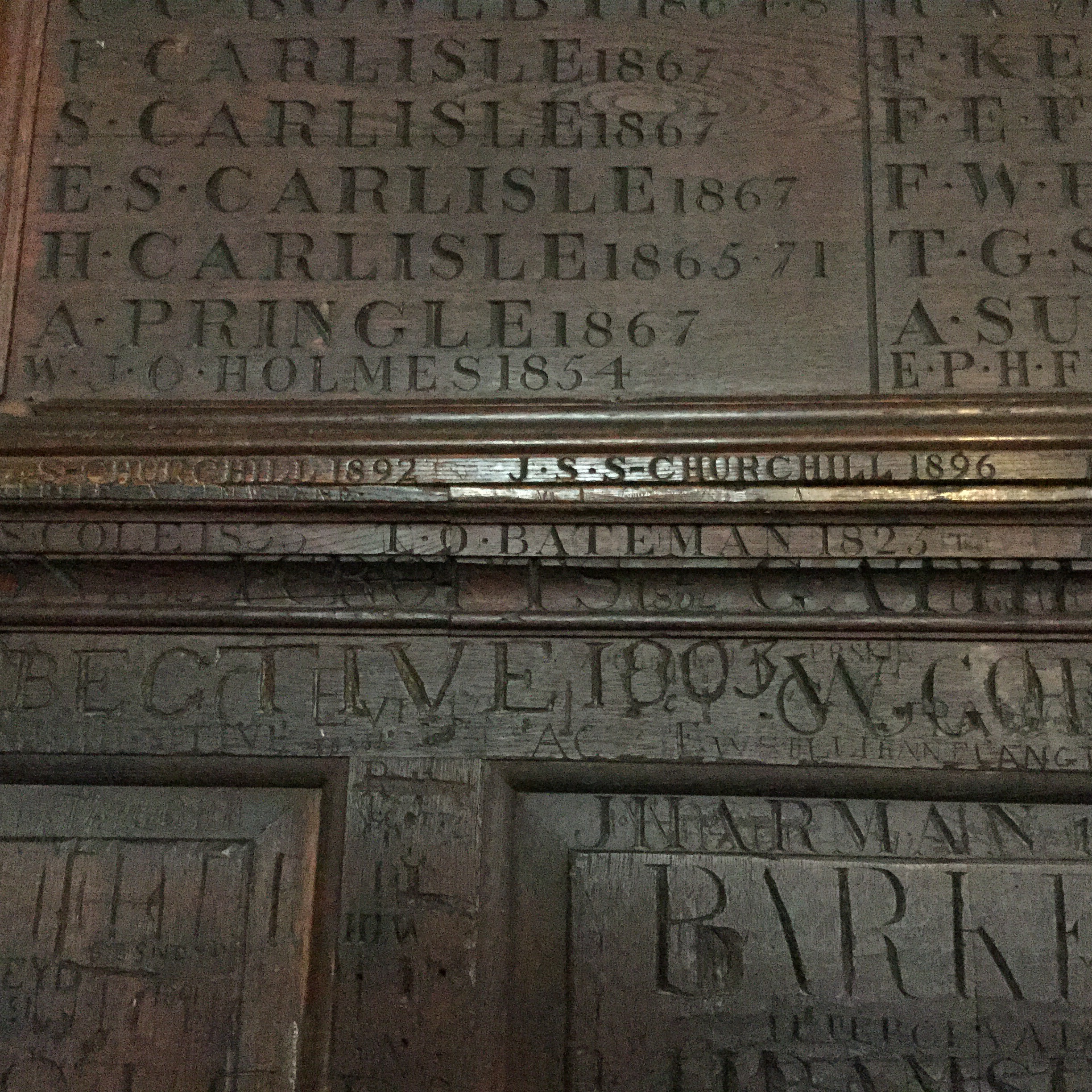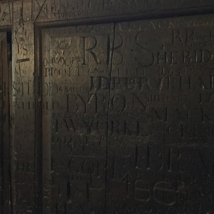 “Harrow” (the 38 thousand pound a year age old prep school that lauds the likes of Lord Byron and Winston Churchill.) Both of their hand carving signatures are shown in these pictures. Adam, Chou’s boyfriend, said that Harrypotter used the same old school for parts of the film.