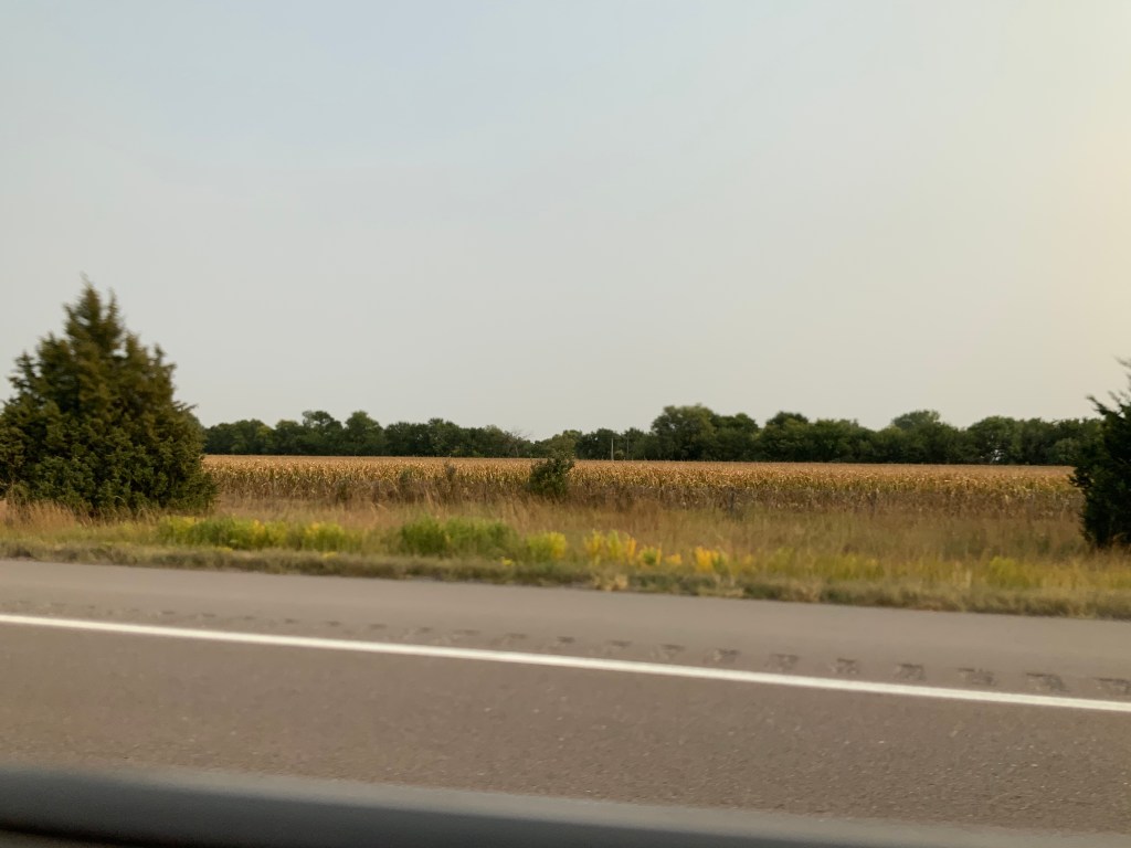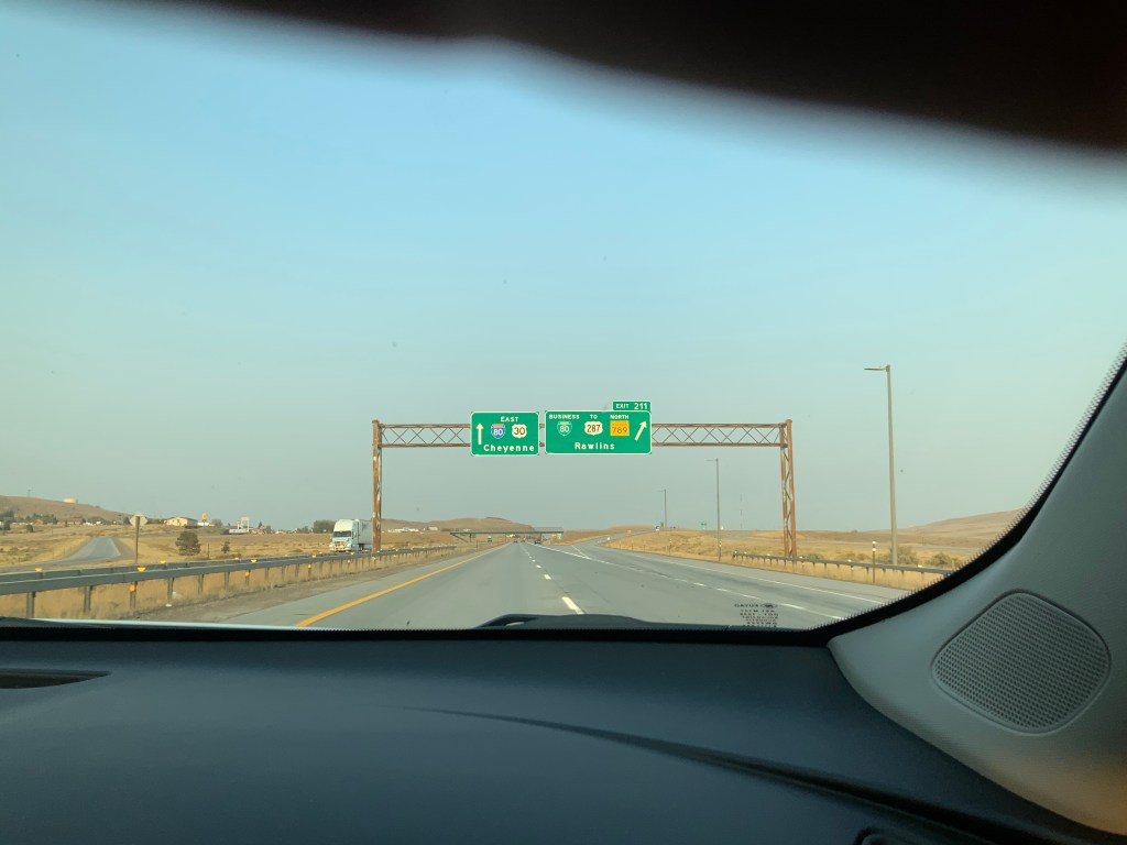 Drove across Wyoming leaving the course at 1 o’clock and arriving in Gothenburg, Nebraska at 9 pm. We drove past Laramie and Cheyenne from brown pancake flat plateau with little to no vegetation, a few wind turbines, to the consistently boring Wheatfields of Nebraska and into the Central time zone.