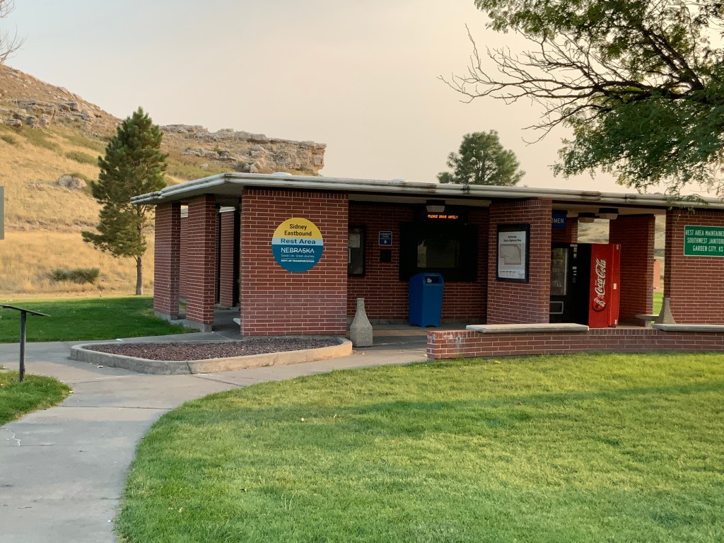 Another noticeable feature of highway 80 throughout our drive from Iowa on has been the impressive rest stops: clean bathrooms, restaurants and travel information all within one large structure. Somewhat like the freeway stops in Europe.