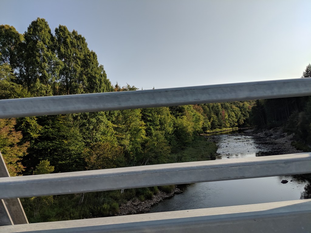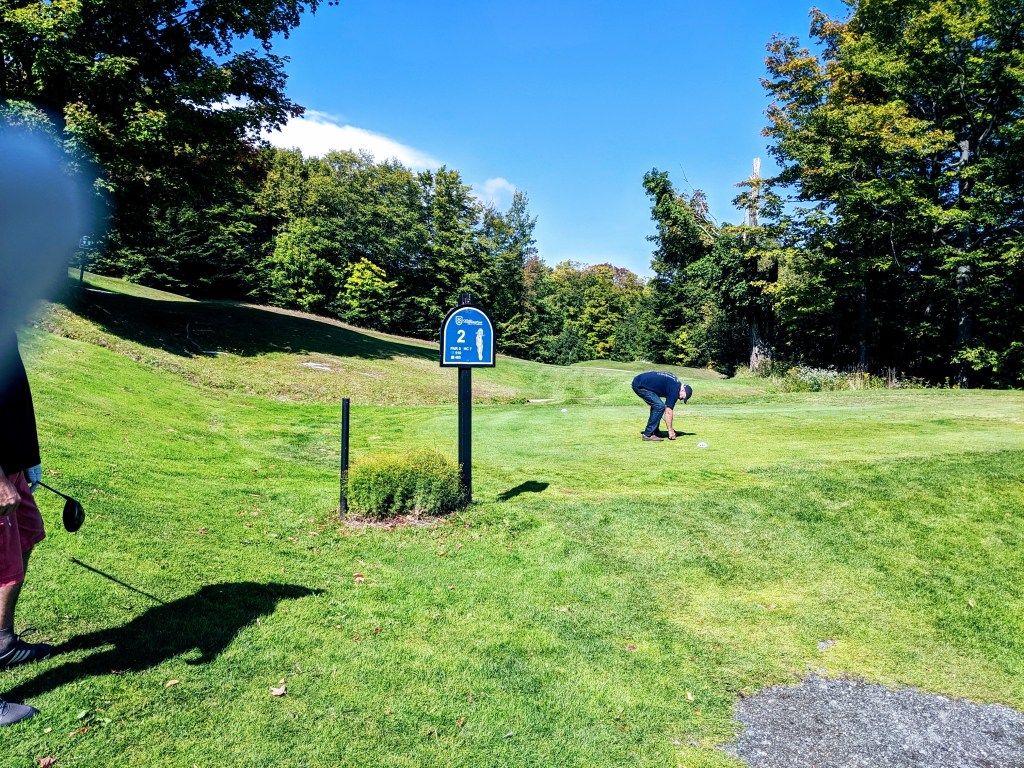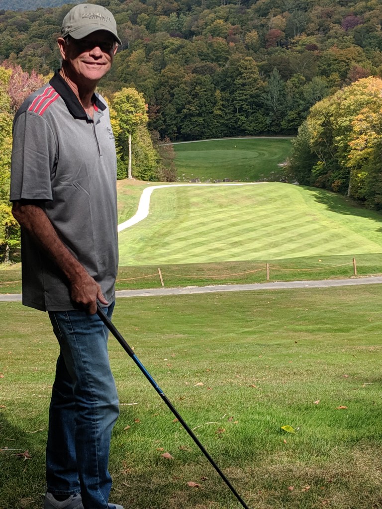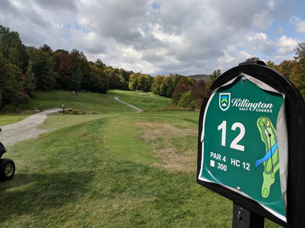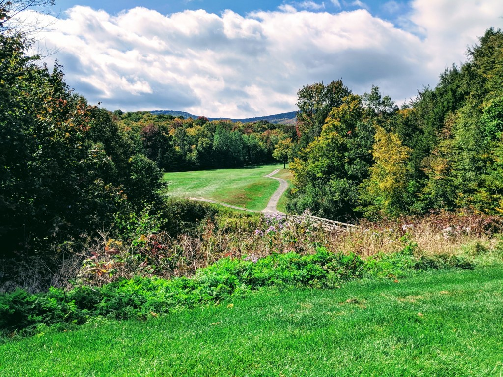 The Killington Mountain course was gorgeous and equally difficult. The greens had angles and undulations I’ve never seen before. To roll off a green was common place and to stop a putt nearly impossible. We joined two 30 year old local guys, Eamon and Trent. Both good guys and comparable golfers to us. We had fun. The leaves in the trees are beginning to change colors. As barren as were Wyoming, Nebraska, and Iowa, UpState NY, Vermont and the corner of Massachusetts, and Connecticut are treed up to the max. Full forests everywhere. Tomorrow we head to Washington, DC for the final round of golf, meet Kev’s brother, Paul and arrange train travel back to California. I must say I’m tired of driving. Here are some pics of Killington Mountain course and our drive from Vermont, thru Massachusetts to Connecticut.