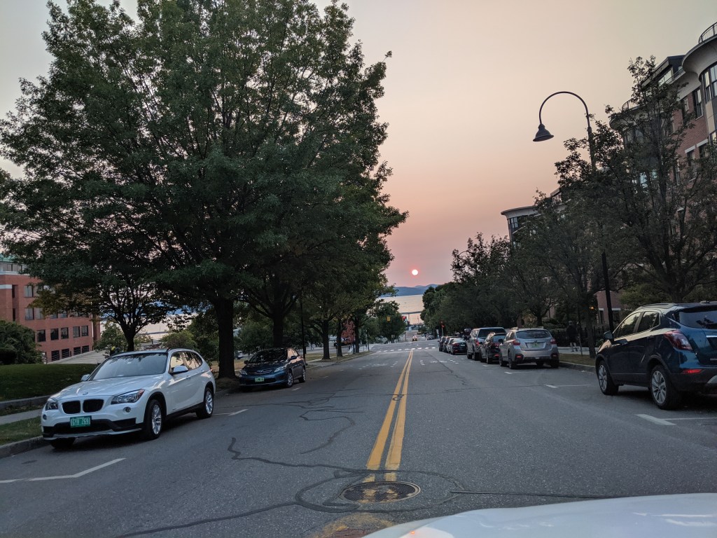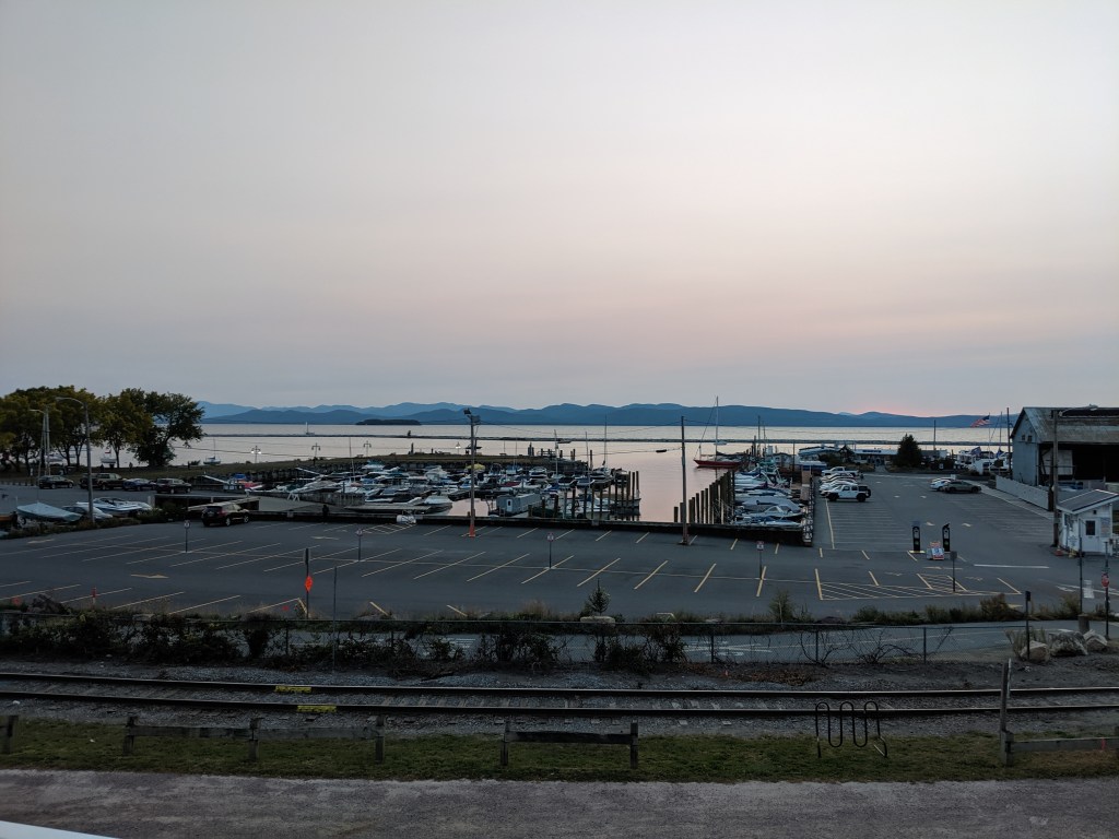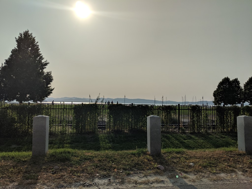 The last day of summer and traveling from Cali, which is what locals here call our state and I find it kind of annoying. One would not guess last day of summer. The rather is 58°s with a brisk wind is blowing off Lake Champlain. It is sunny and semi bright, the smoke from the west coast has made it’s way east.