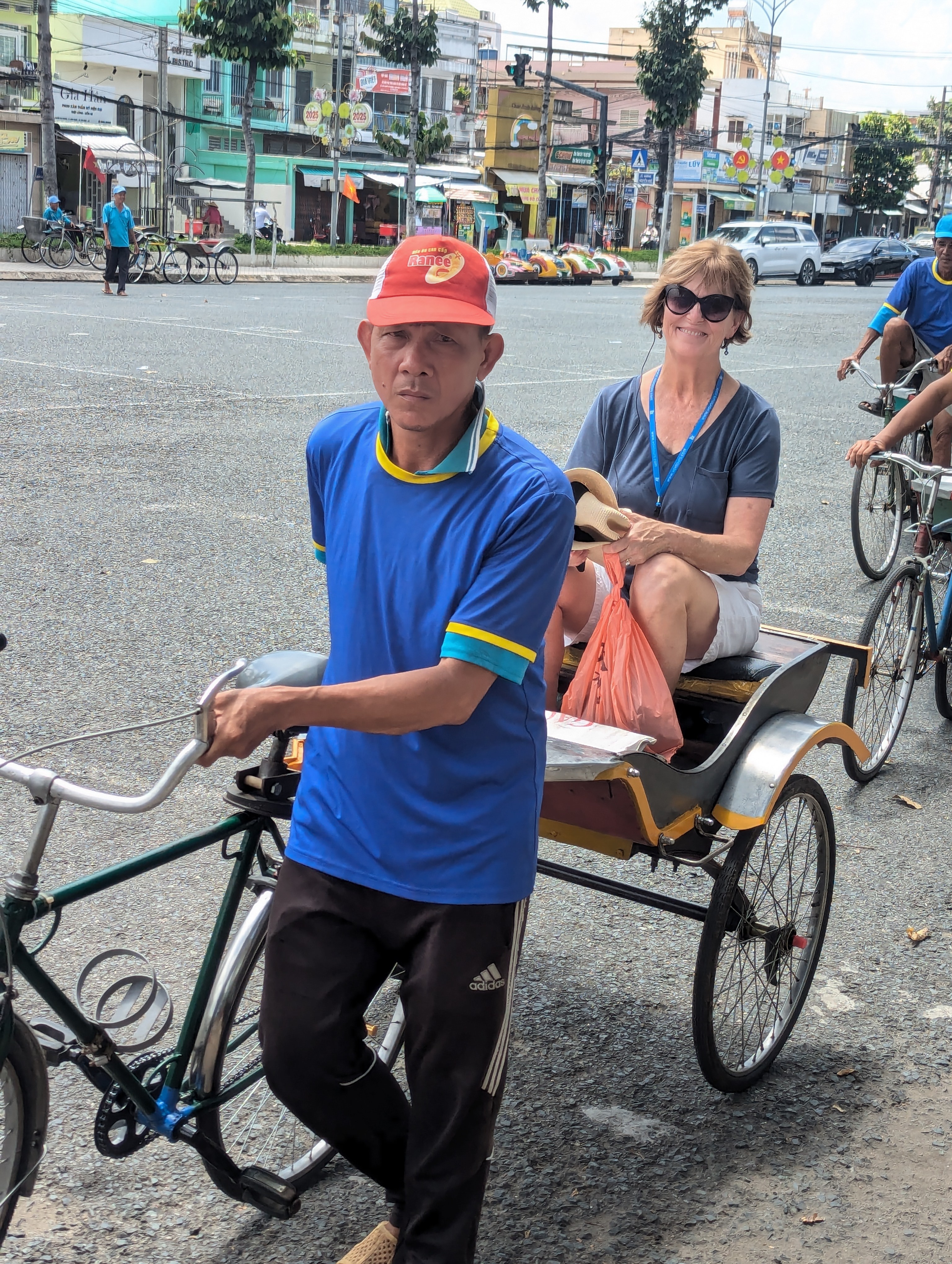 Tan chau. A small MeKong River town un touristed. A traditional “xe-lori”, trishaw ride to silk making and rattan mat workshop. And then a short boat ride to “Evergreen island” to explore Tra Su Forest and sanctuary. These are the bones of the day. I’ll embellish later. Afterwarda, onward to Phen Penh, Cambodia.