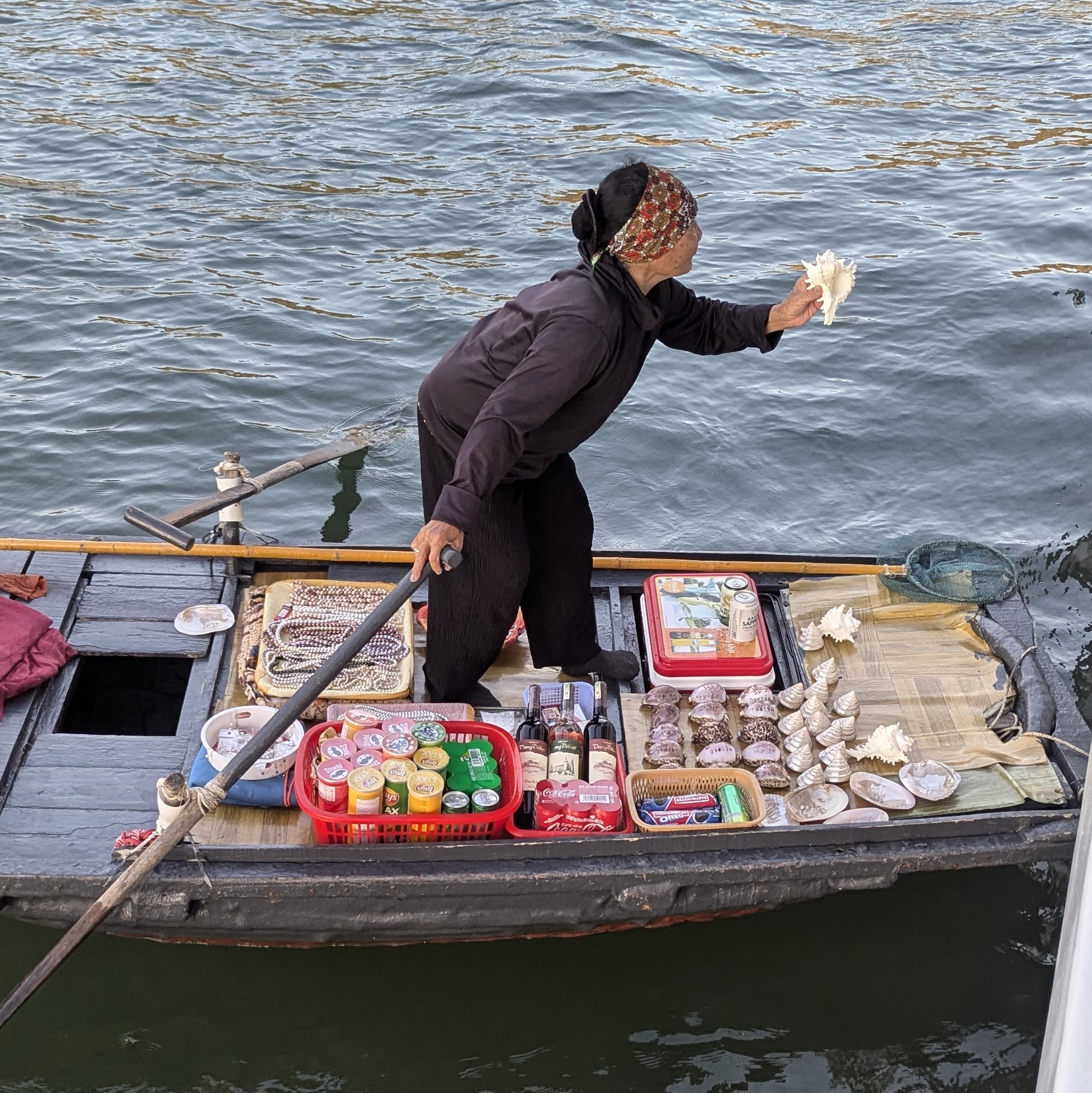 Overnight cruised to Cai Be. Last night we listened to and witnessed traditional Vietnamese music, dance and song and believe it or not, i drank too much. I did manange to hit yoga at 6:30 this morning. Today excursion to historic pre-colonial Kiet House to view priceless ceramics and antiquities. Then we sail to Sa.Dec and small boat through Cai Dai Temple and boar through water market.